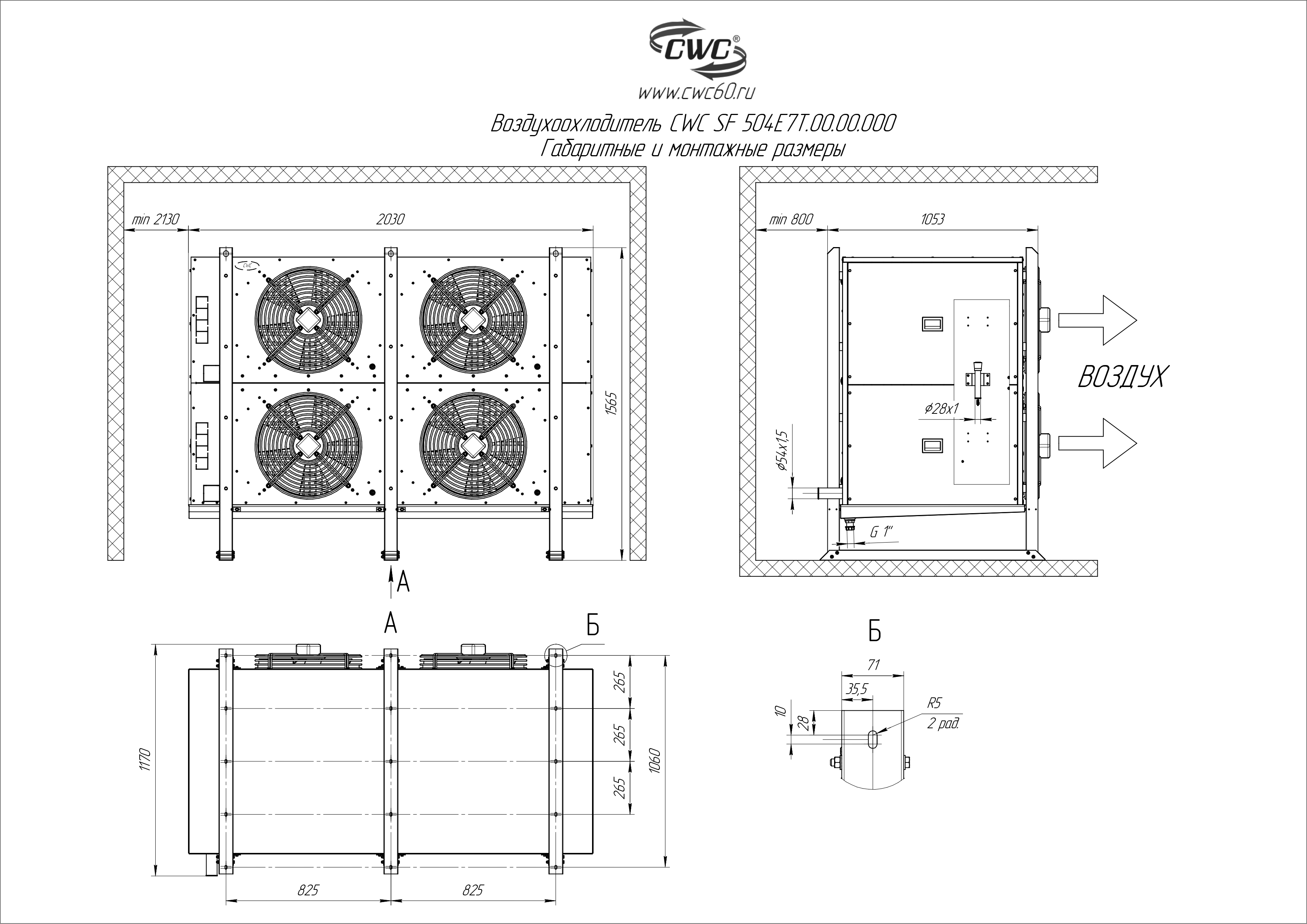 Благодаря усиленной конструкции корпуса изделие имеет высокую устойчивость к вибрации. В стандартном исполнении воздухоохладители имеют встроенные электротэны для оттайки. Вентиляторы оборудованы трехфазным электродвигателем, питающимся от сети 380 В, 50 Гц.