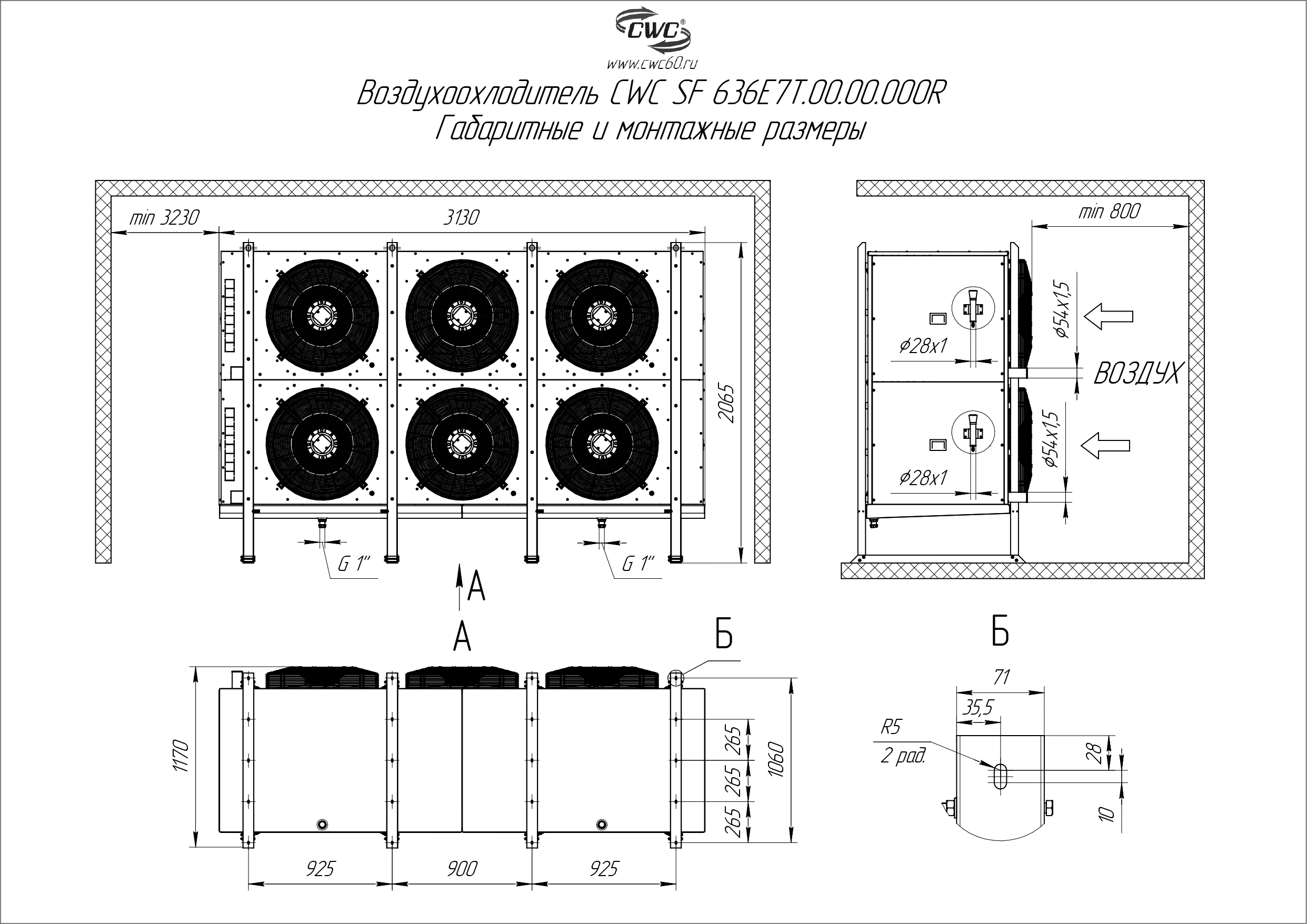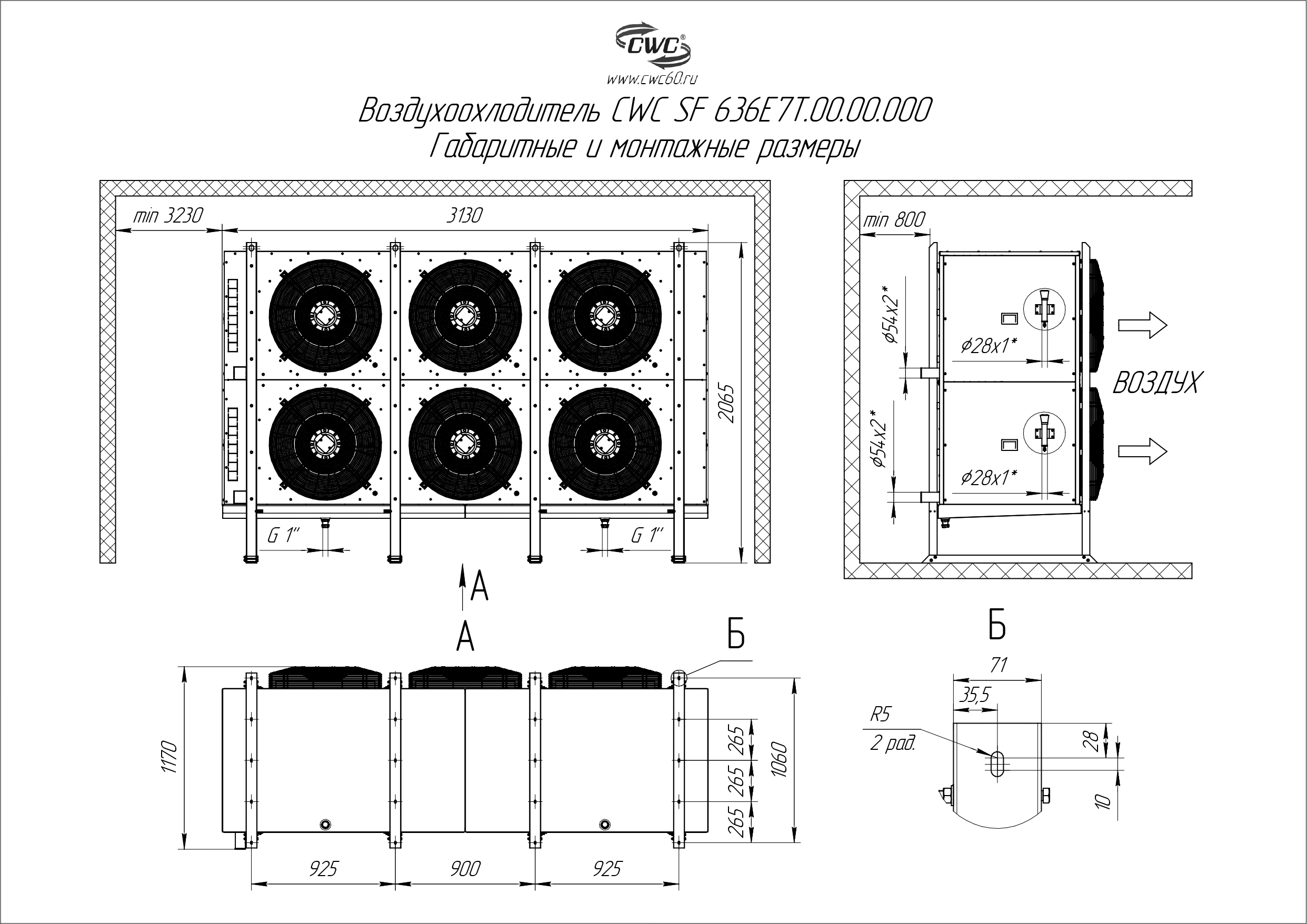 Благодаря усиленной конструкции корпуса изделие имеет высокую устойчивость к вибрации. В стандартном исполнении воздухоохладители имеют встроенные электротэны для оттайки. Вентиляторы оборудованы трехфазным электродвигателем, питающимся от сети 380 В, 50 Гц.